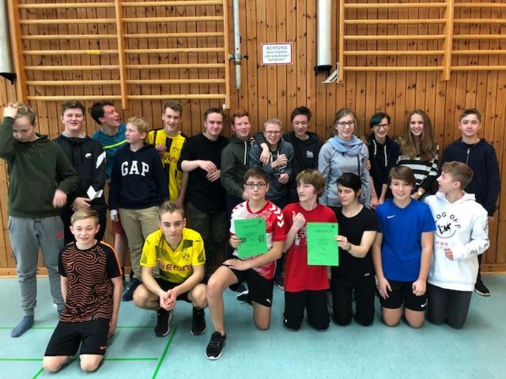 Heute haben sich die 9. Klassen im Volleyball gemessen und wir haben spannende, schweißtreibende und emotionale Spiele sehen dürfen. Die Platzierungen vom Klassen- und vom "best off" Turnier sind dabei identisch. Demnach belegte die 9d den 1. Platz, die 9a den 2. Platz, die 9c den 3. Platz und die 9b den 4. Platz. Allen Teilnehmern herzlichen Glückwunsch